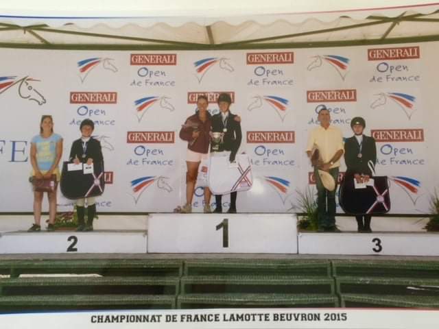 2015 : Toscane d’Hurl’Vent médaille d’Or poney 1 et Unamazone d’Hurl’Vent médaille d’Argent poney Élite et 4eme par équipe avec Toscane